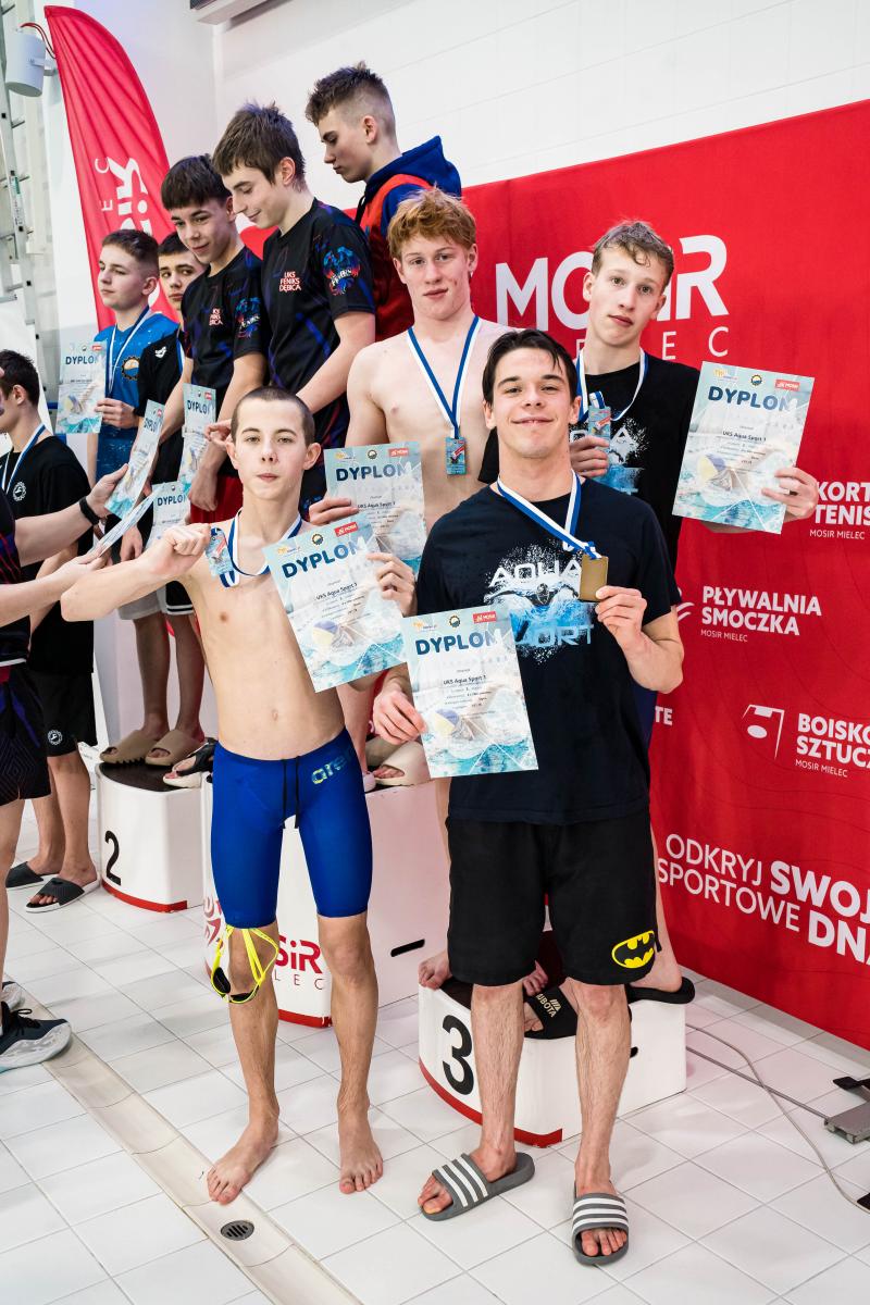 WRÓBEL Filip – 1 miejsce – 200m grzbietowy, 1 miejsce – 200m dowolny, 1 miejsce – 100m motylkowy, 3 miejsce – 100m dowolny